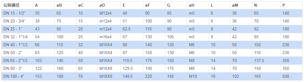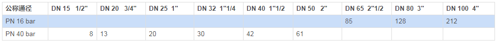 法蘭連接要求:EN 1092-1 PN40至 DN50; PN16 DN65,80,100; EN 12516