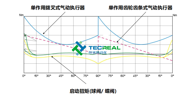 綜上所述,OMAL的撥叉式氣動執行器在輸出扭矩上是更為適合球閥和蝶閥啟閉,因為其結構的不同,這也就導致了他們兩者在輸出扭矩上的不同。