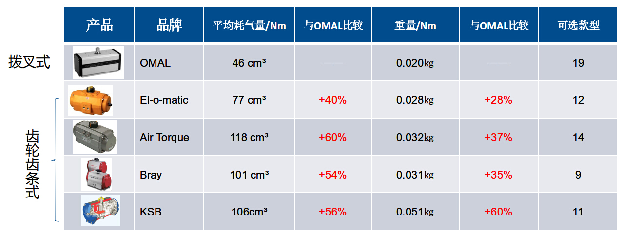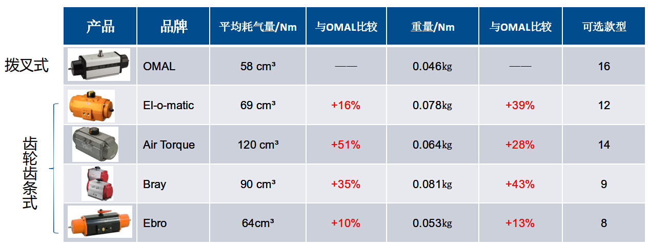 總結,從上面六個方面去對比,發現,撥叉式氣動執行器無論從哪個方面都比齒輪齒條式氣動執行器更加優秀!所以撥叉式結構現在在市面上越來越流行了,但是,撥叉式氣動執行器的生產對制造工藝要求較高,目前市面上僅意大利OMAL自控閥門公司生產的OMAL品牌撥叉式氣動執行器廣受大家的歡迎。意大利OMAL也是撥叉式氣動執行器的發明者。