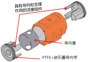 注:BETTIS也有PTFE+碳石墨導向帶設計,但該導向帶不起密封作用,僅能起到活塞導向的作用,真正起活塞密封作用是O形圈。 |