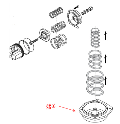 BETTIS(貝蒂斯) 多根彈簧的彈簧復位裝置,缺點:多根彈簧,在壓縮過程中,可能同時對端蓋及活塞造成損害。