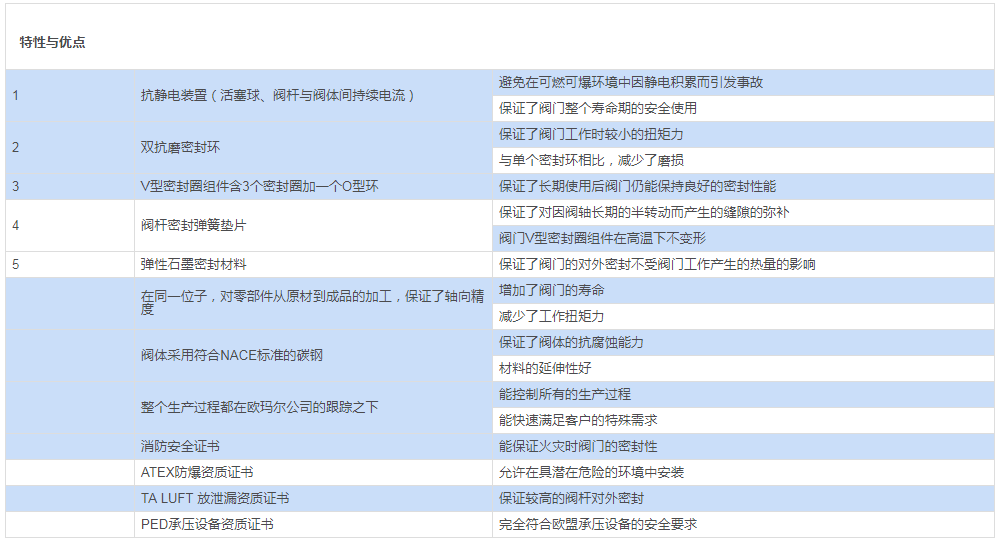 閥桿密封:V型系列,采用TFM聚四氟乙烯材料