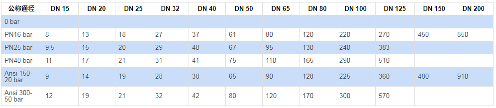 扭矩的數據隨工作介質的溫度而變。安全系數設定為1.4。與開始使用時的數據相比,長期頻繁使用后扭矩數據會有明顯的減小。
