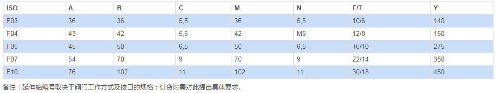 備注:延伸軸編號取決于閥門工作方式及接口的規格;訂貨時需對此提出具體要求。