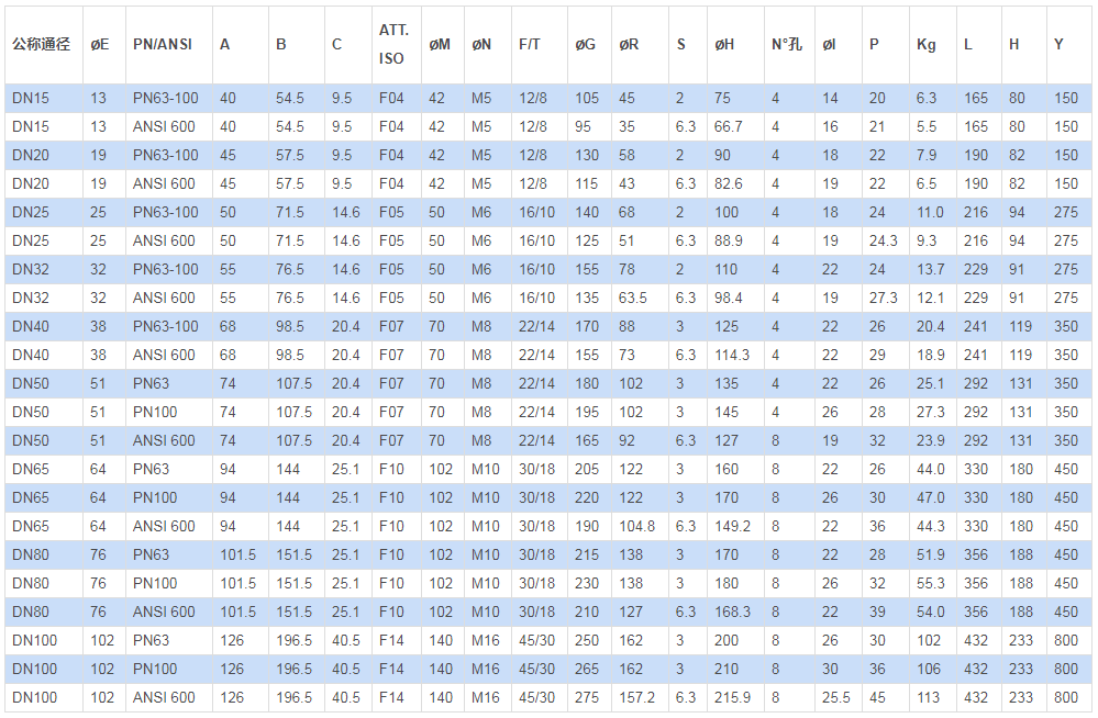 壓力等級:符合ANSI600/PN63-100標準