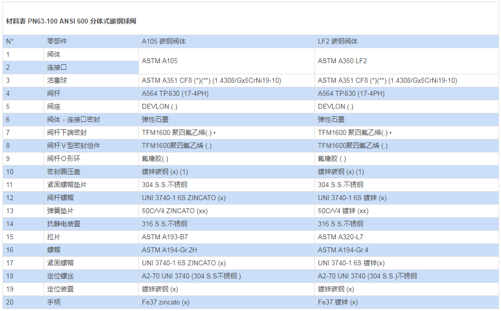 (**): 對于公稱通徑 ≤DN40x32 的閥門,僅能提供 CF8M材料的? |