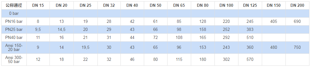 扭矩的數據隨工作介質的溫度而變。安全系數設定為1.4。與開始使用時的數據相比,長期頻繁使用后扭矩數據會有明顯的減小。