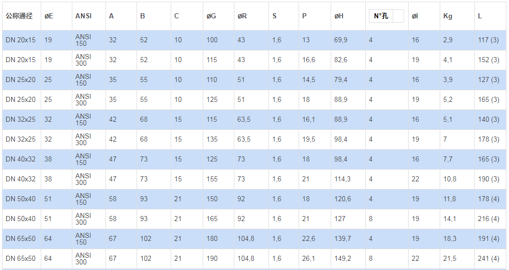 法蘭連接:符合EN 1092-1,ANSE B16.5標準