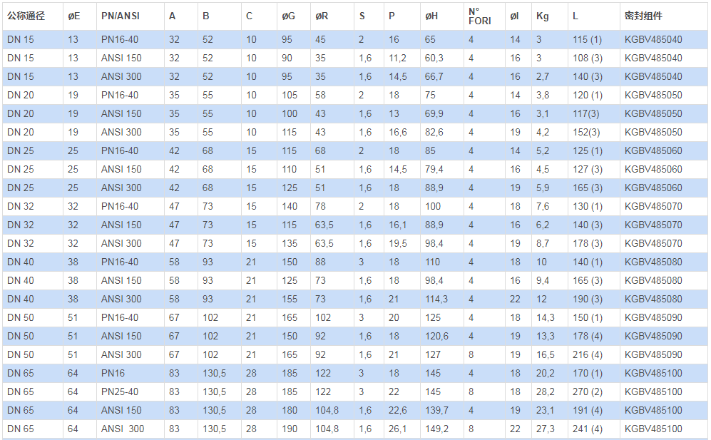 密封材料:PTFE加玻璃(RPTFE-GF),PTFE加碳石墨(RPTFE-CF)。如需其它密封材料,請與我們的銷售部門聯系。