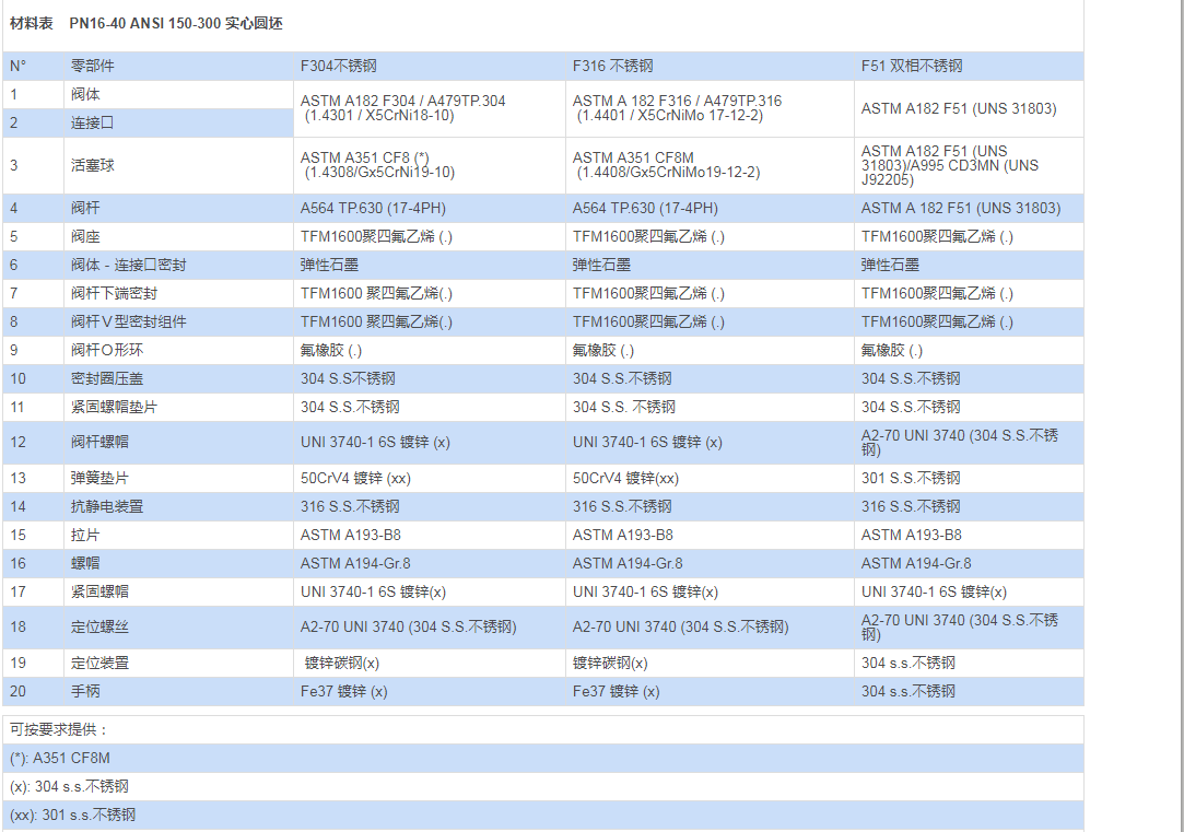 材料及等級:對ANSI美標閥門,符合ASME B16.34標準;對PN公稱壓力閥門,符合 EN12516標準